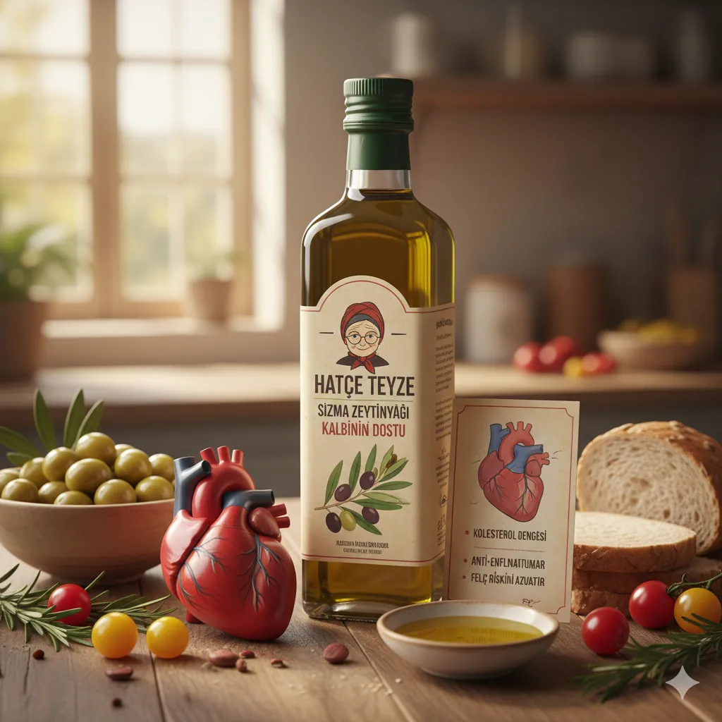 "Hatçe Teyze zeytinyağı, kolesterol dengesinden felç riskini azaltmaya kadar kalp sağlığınız için vazgeçilmez bir destektir."